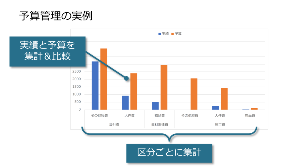 予算管理をする場合、この 計画と実績を比較 する必要がありますが、このデータ処理は非常に面倒な作業です。
