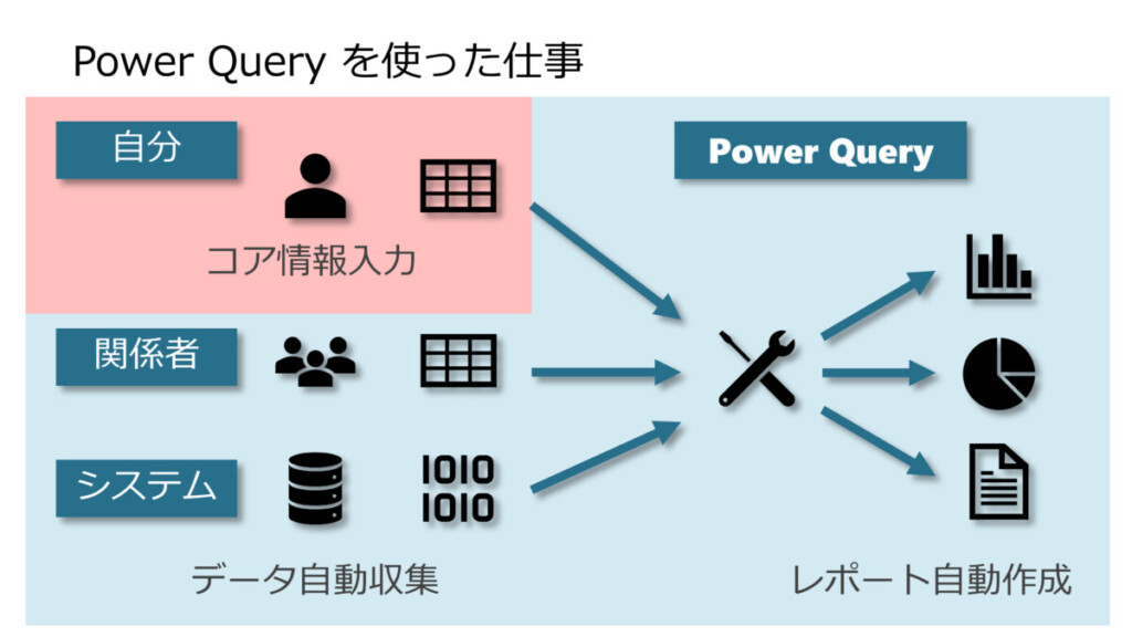 つまり、データ処理などの単純労働は Power Query に任せて しまって、自分は大切な仕事に集中するということです。