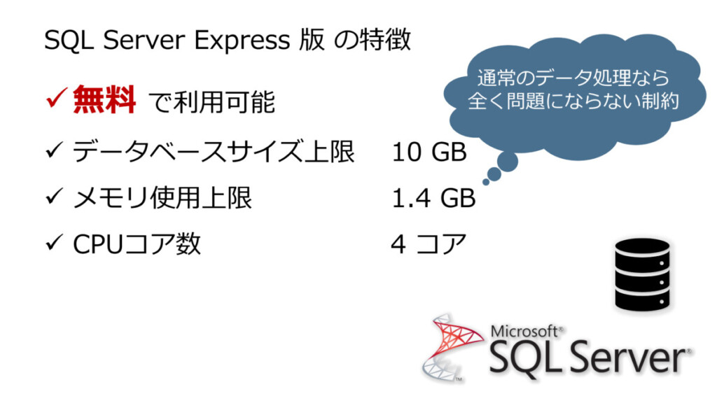 以上の理由から、業務改革のために仕事にデータベースを導入するのであれば SQL Server Express を利用するのが大変オススメです。