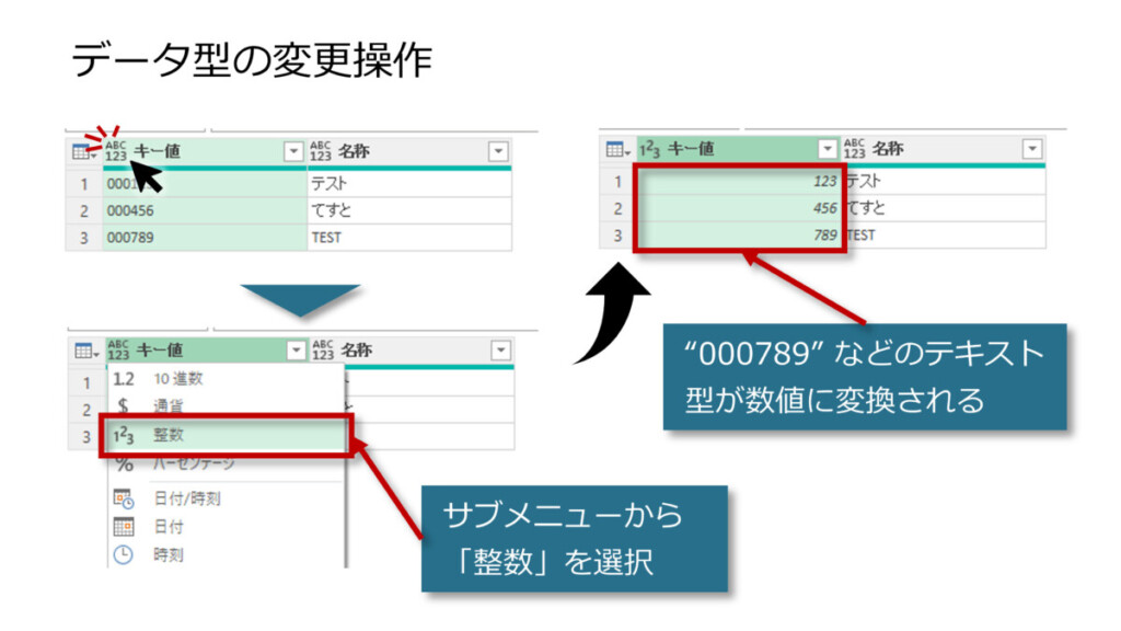 続いては数値列をキー列としてデータを結合する場合のトラブルの原因と対策についてみていきます。