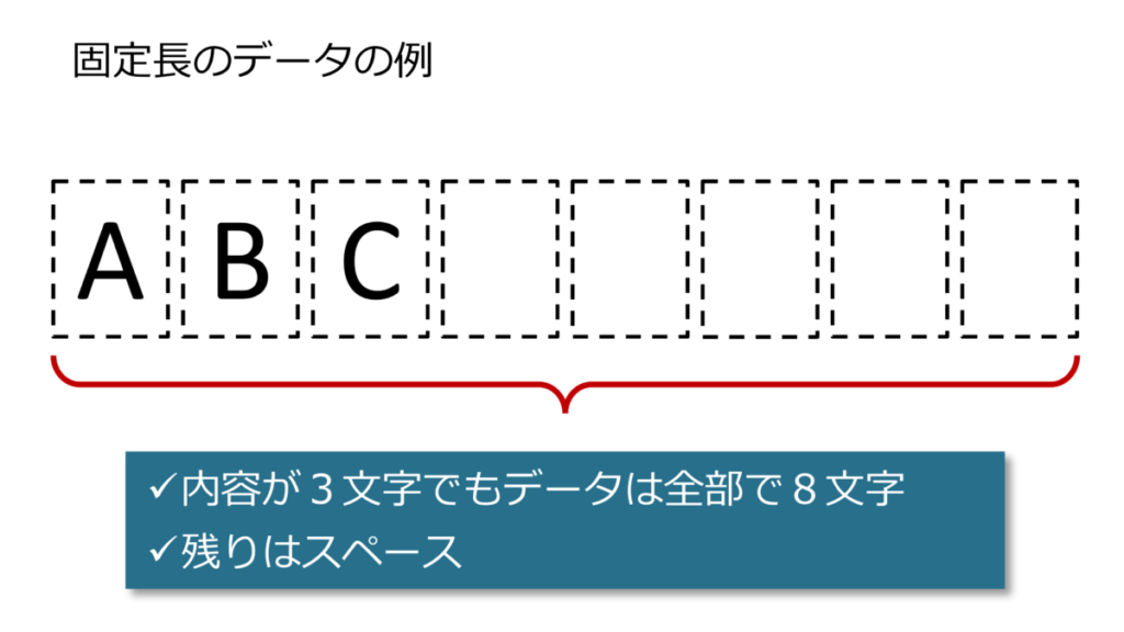 システムから出力されるデータの中には入っている内容にかかわらず文字数が決まっている 固定長のデータ があります。