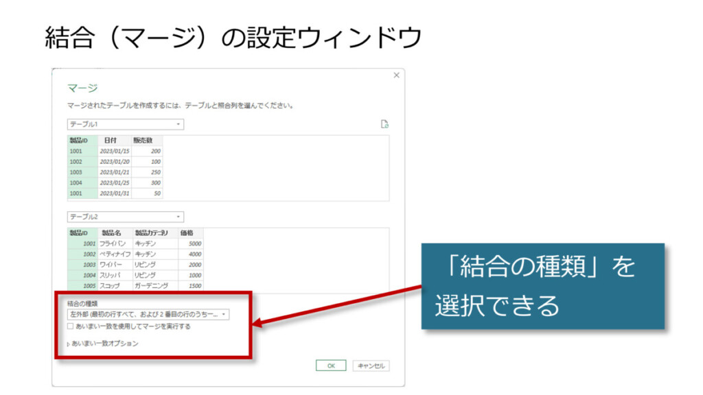 テーブル結合操作は通常であればデフォルト設定のまま「OK」ボタンを押し続けることで簡単に完了してしまいます。