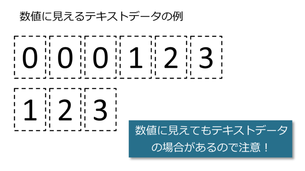 同じように 123 と表示されていても、実際には テキスト として表現されている場合があります。