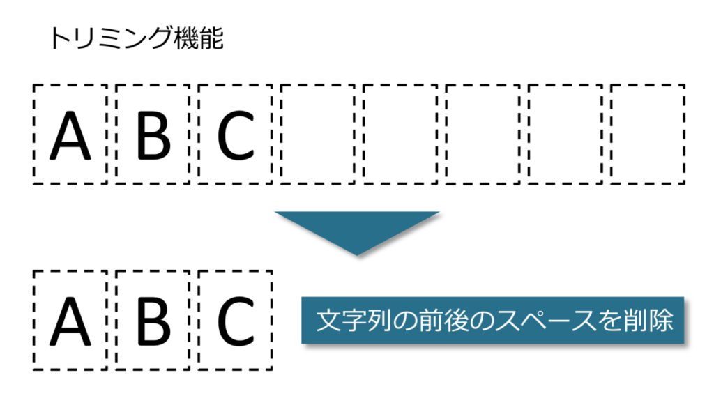 「トリミング」は 前後のスペースを削除 する機能になります。これを活用します。