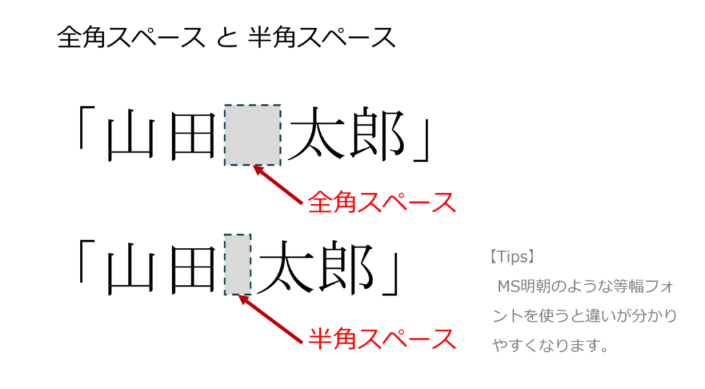 「山田 太郎」 と 「山田 太郎」 というテキストデータ、一見すると同じに見えます。この記事もブラウザで閲覧されるため、その違いが分かりにくいかもしれません。